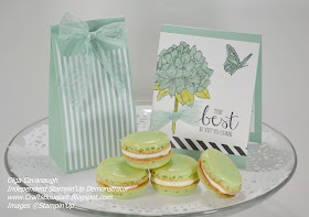 I really love the way this bag turned out, it is so elegant and classy...and is ready to be packed with these delicious Mint Macarons I baked for first time so I apologize for they are not so perfect :) but they still taste so good, you have the crispiness on the outside and the chewy inside with the mint filling and you will end up savoring the rich almond flavor at the end...